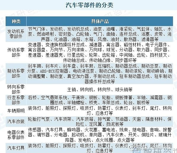 The upstream of the automotive parts industry supply chain is the raw material supply link, mainly including steel, non-ferrous metals, electronic components, plastics, rubber, wood, glass, ceramics, leather, etc; The midstream automotive parts have a rich variety of styles, among which the engine set and electronic control system belong to the core components of automobiles; The downstream mainly includes automobile manufacturers, automobile 4S stores, automobile repair shops, automobile parts suppliers, automobile modification factories, etc.