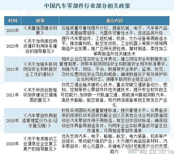 In recent years, national policies have continuously promoted the adjustment and upgrading of the automotive industry, encouraging the research and development of high-quality, high-tech independent brand cars, and maintaining significant support for new energy vehicles, relying on policy dividends to promote the vigorous development of China's new energy vehicle industry. At the same time, with the development of global economic globalization and market integration, the position of automotive parts in the automotive industry has become prominent. Therefore, macro management and policy guidance for the automotive manufacturing industry by government departments and industry associations in China are constantly emerging. There are numerous types and quantities of automotive parts, which involve different industries and fields. There are significant differences in technical standards, production methods, and other aspects. Currently, the national policies related to automotive parts manufacturing are mainly distributed in the automotive industry.